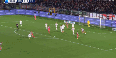 第57分钟,扳回一城,奥克雷克门前推射破门,克雷莫内塞1-3佛罗伦萨